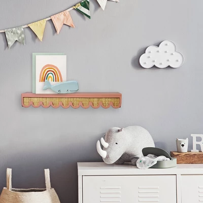 This Scalloped Woven Ledge from Pillowfort ledge is perfect to curate an effortless wall display for art, photos, or decorative objects. Great as a single ledge or used in multiples for an elevated statement.
